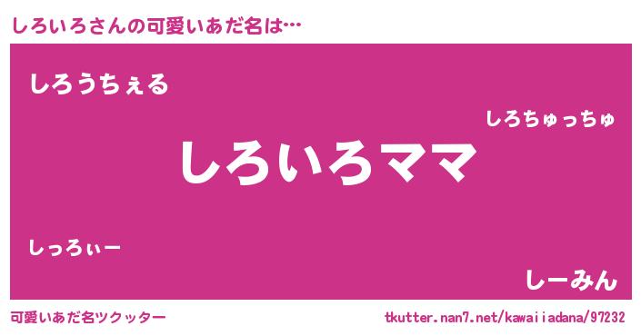 | ヘコむあだ名 | 『しろいろ(苦笑)』『しろを』『豆乳』 |