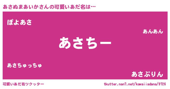 | 女子向けラノベタイトル風あだ名 | 『あさぬまあいかの雑貨屋さん』 |