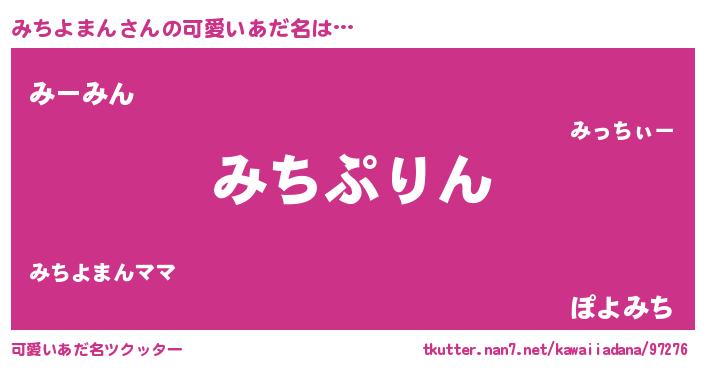 | 男性向けラノベタイトル風あだ名 | 『みちよまん~年齢イコール彼女いない歴の魔法使い~』 |