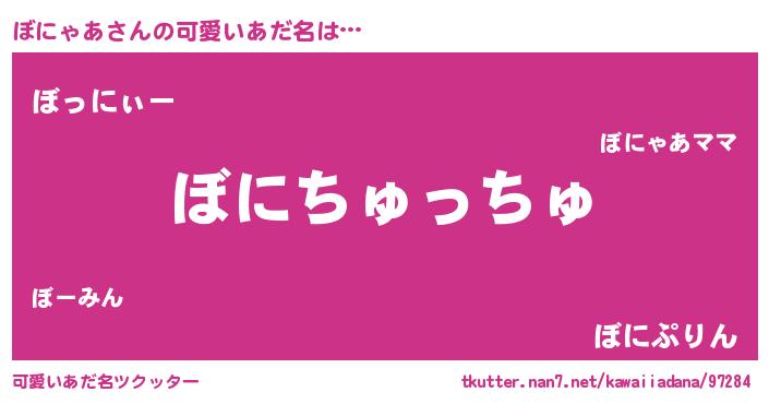 | ヒーロー風カッコイイあだ名 | 『正義の使者ぼにゃあ』『幻影騎士ボニ』 |