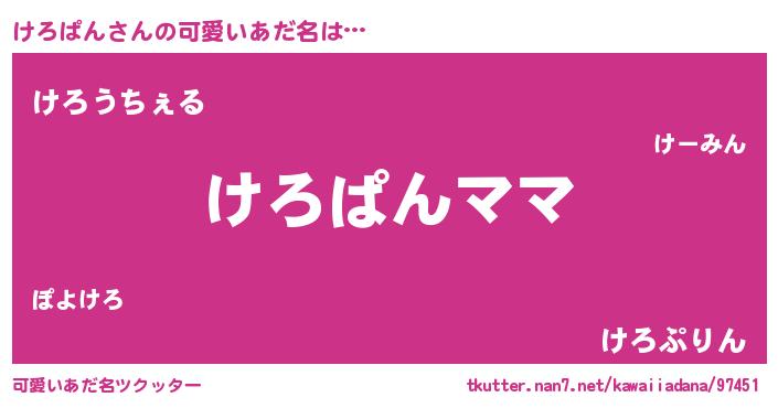 | 意味不明あだ名 | 『永久保存けろぱん』『自称けろぱん』 |