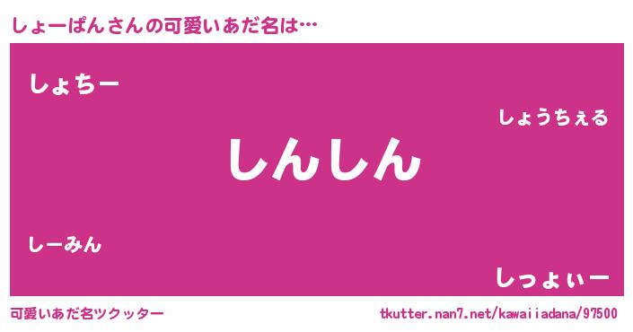 | 意味不明あだ名 | 『ペロリンしょーぱん』『自称しょーぱん』 |