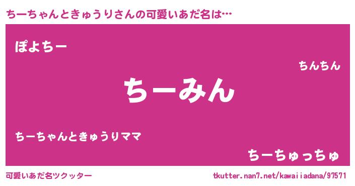 | 意味不明あだ名 | 『住所不定無職ちーちゃんときゅうり(8歳)』 |
