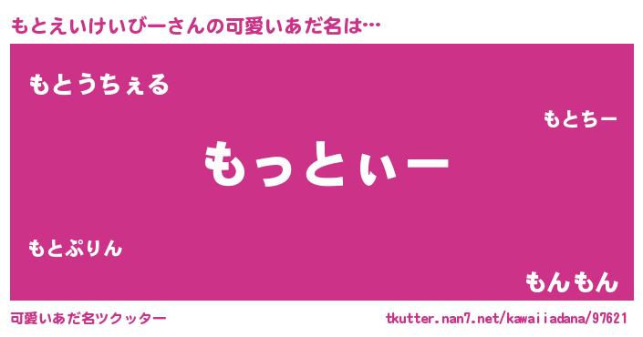 | 意味不明あだ名 | 『とにかく怪しいもとえいけいびー』 |