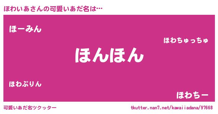 | ヘコむあだ名 | 『ほわふぇ~』『豆乳』『ほわぷりん』 |