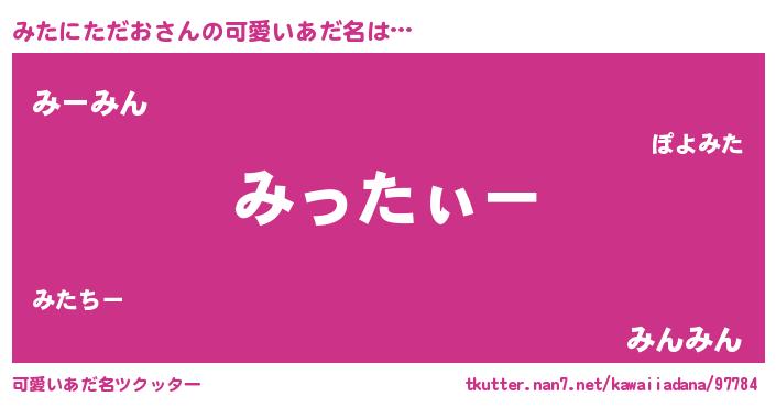 | 欧米人風あだ名 | 『ウサインみたにただお』 |