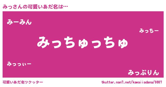 | ヒーロー風カッコイイあだ名 | 『慈愛の使者みっ』『ウルトラみっマン』 |