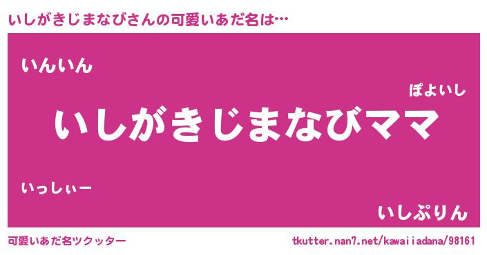 | ヘコむあだ名 | 『いしがきじまなび(笑)』『いしにゅー』 |