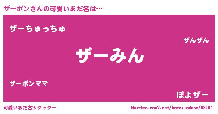 | 男性向けラノベタイトル風あだ名 | 『緋弾のザーポン』『魔弾の王とザーポン』 |