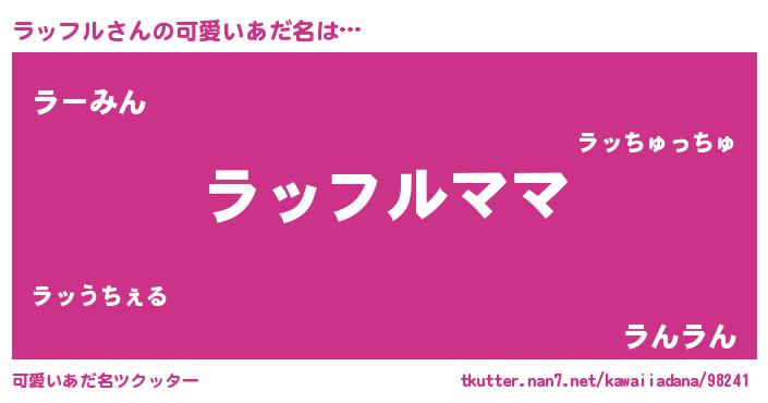 | ヘコむあだ名 | 『ラッフル(遠い目)』『ラッふぇ~』 |