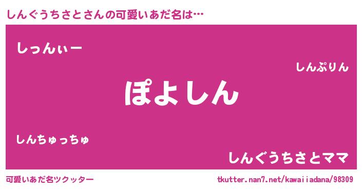 | 意味不明あだ名 | 『住所不定無職しんぐうちさと(2歳)』 |