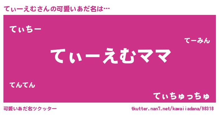 | ヒーロー風カッコイイあだ名 | 『ネオティーエム』『愛の使者てぃーえむ』 |