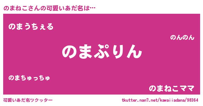 | ヘコむあだ名 | 『のまねこ(震え声)』『のまもー』 |