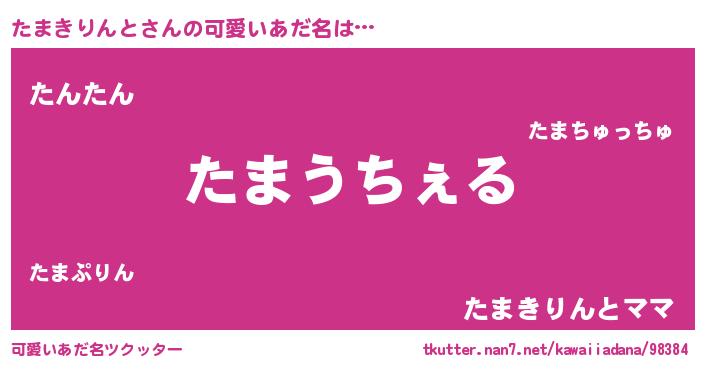 | 男性向けラノベタイトル風あだ名 | 『Re:たまきりんとから始める異世界生活』 |