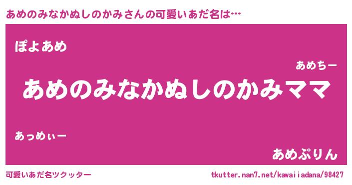 | 意味不明あだ名 | 『永久保存あめのみなかぬしのかみ』 |