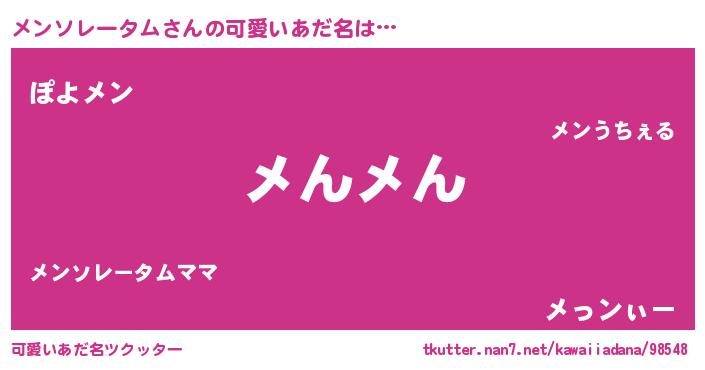 | ヘコむあだ名 | 『メンふぇ~』『メンぷりん』 |