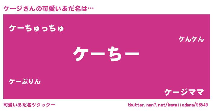 | ヘコむあだ名 | 『豆乳』『ケージ(苦笑)』『ケー太郎』 |