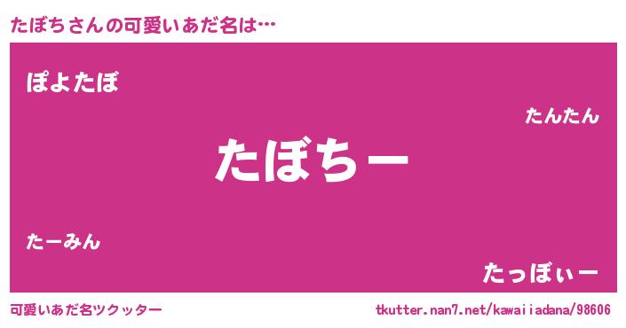 | ヒーロー風カッコイイあだ名 | 『ウルトラたぼちマン』『仮面タボダー』 |