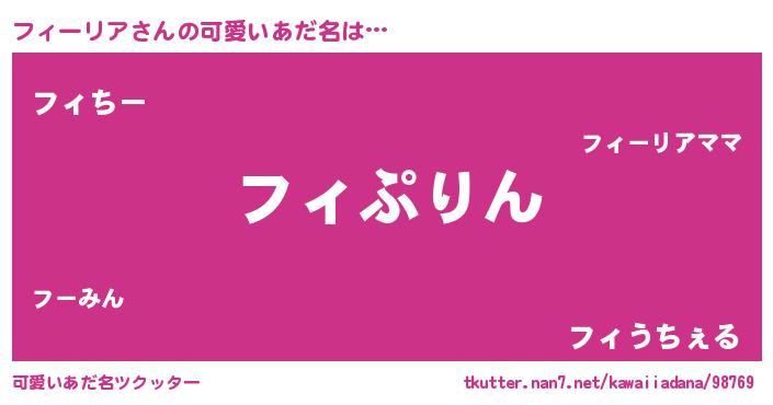 | ヘコむあだ名 | 『酢こんぶ』『フィーリア(笑)』 |