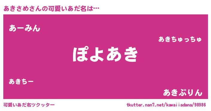 | ヘコむあだ名 | 『なまこ酢』『あきっ子』『あきもー』 |