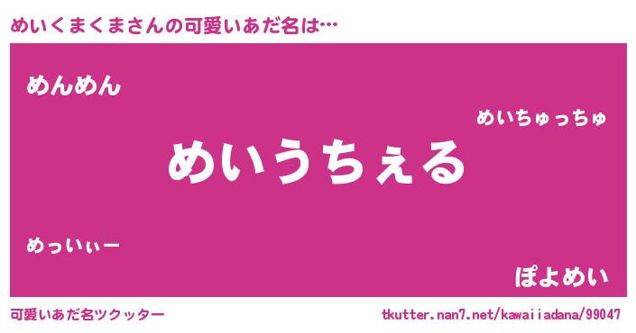 | 男性向けラノベタイトル風あだ名 | 『Re:めいくまくまから始める異世界生活』 |