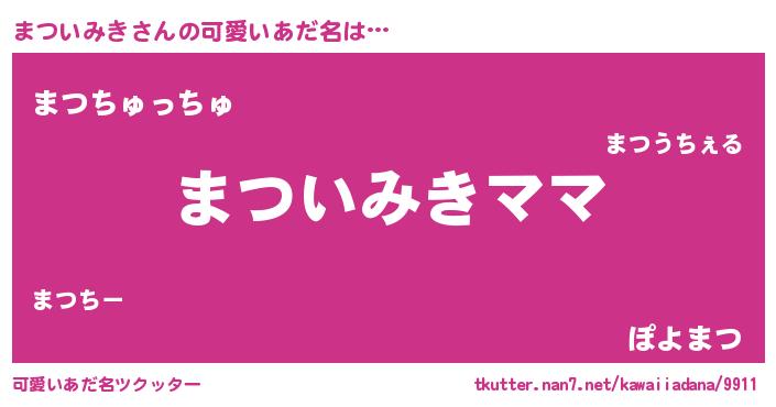 | 意味不明あだ名 | 『永久保存まついみき』『自称まついみき』 |