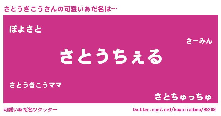 | 男性向けラノベタイトル風あだ名 | 『Re:さとうきこうから始める異世界生活』 |