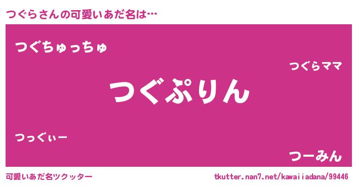 | 女子向けラノベタイトル風あだ名 | 『つぐらの玉の輿計画!』『つぐら恋絵巻』 |