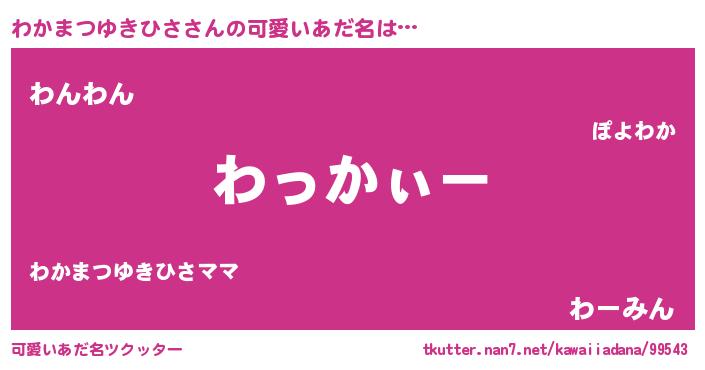 | ポケモン風あだ名 | 『ヒワカマツユキヒサ』『ワカゴンZ』 |