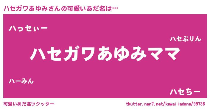 | ポケモン風あだ名 | 『ゼニハセ』『ヒハセガワアユミ』 |