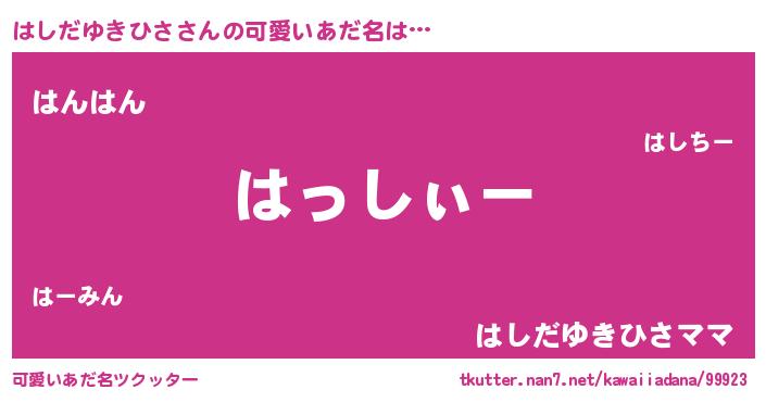 | 男性向けラノベタイトル風あだ名 | 『はしだゆきひさの嫁は女の子じゃないと思った?』 |