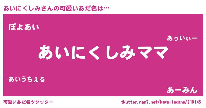 | ヘコむあだ名 | 『あいにくしみ(笑)』『あいぷりん』 |