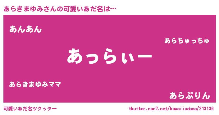 | 女子向けラノベタイトル風あだ名 | 『あらきまゆみは平凡を望む』 |