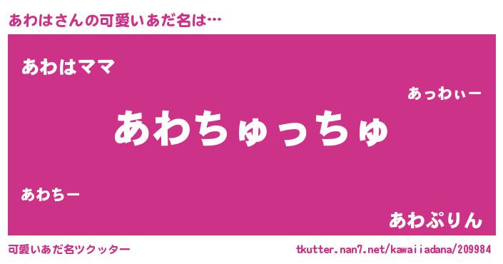 | 女子向けラノベタイトル風あだ名 | 『死神あわはの再婚』『あわはの契約王妃』 |