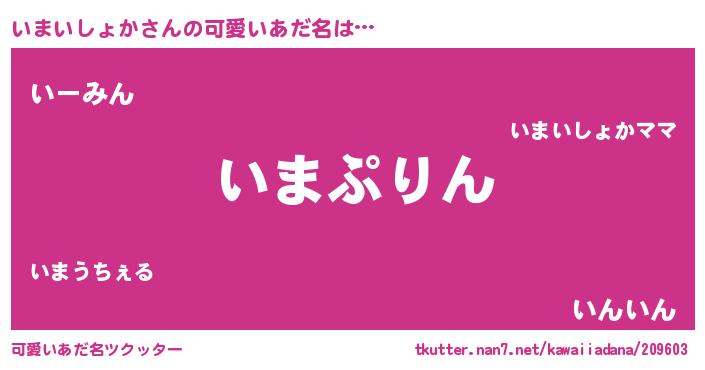 | 男性向けラノベタイトル風あだ名 | 『いまいしょか~年齢イコール彼女いない歴の魔法使い~』 |