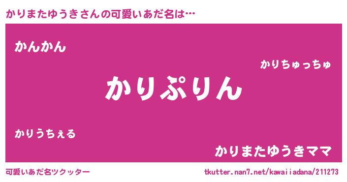 | ヘコむあだ名 | 『かりもー』『かりまたゆうき(苦笑)』 |