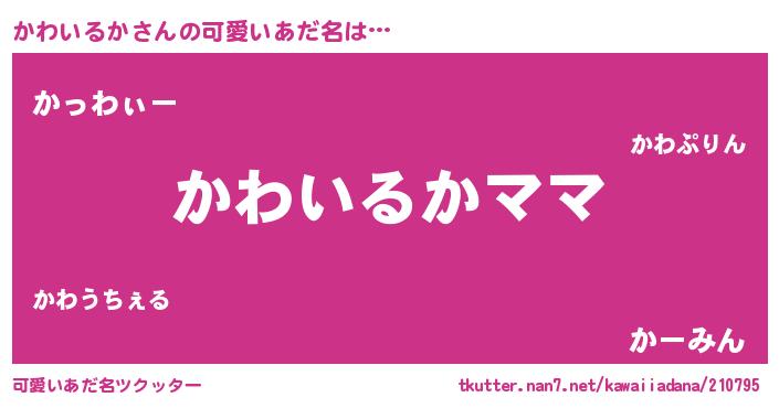 | 男性向けラノベタイトル風あだ名 | 『かわいるかという概念が存在しない退屈な世界 』 |