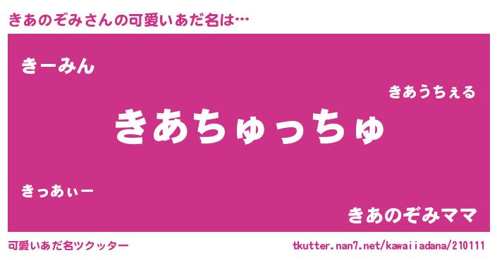 | ヘコむあだ名 | 『きあのぞみ(苦笑)』『きあっぺ』 |