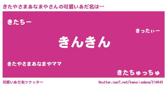 | 女子向けラノベタイトル風あだ名 | 『(仮)きたやさまあなまやのやんごとなき事情』 |