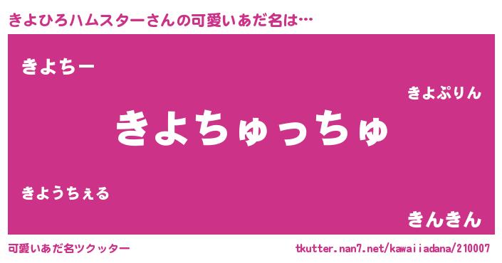 | 女子向けラノベタイトル風あだ名 | 『きよひろハムスター夫妻のなれそめ』 |