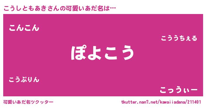 | 男性向けラノベタイトル風あだ名 | 『この素晴らしい世界にこうしともあきを!』 |