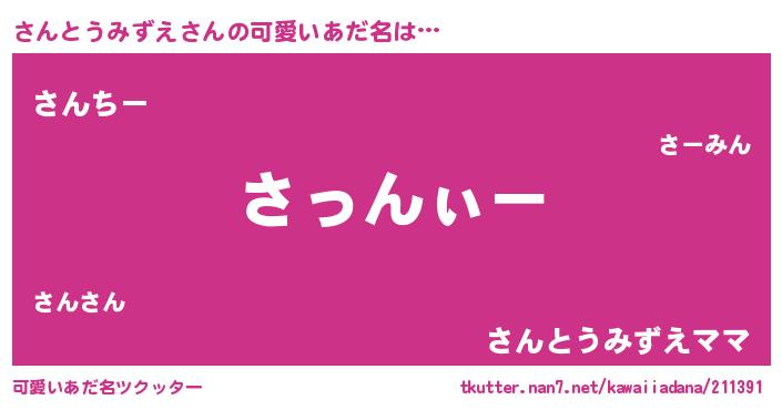 | 意味不明あだ名 | 『とにかく怪しいさんとうみずえ』 |