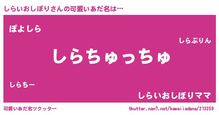 | 女子向けラノベタイトル風あだ名 | 『しらいおしぼり夫妻のなれそめ』 |