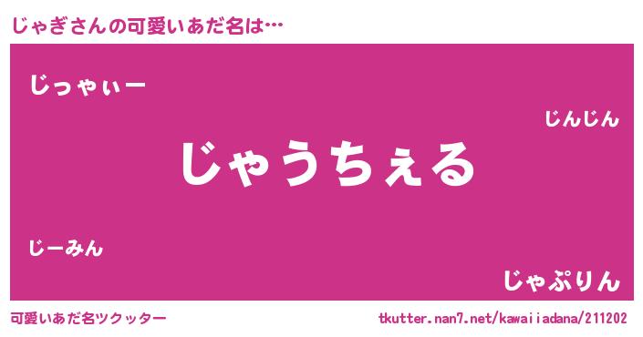 | 男性向けラノベタイトル風あだ名 | 『Re:じゃぎから始める異世界生活』 |