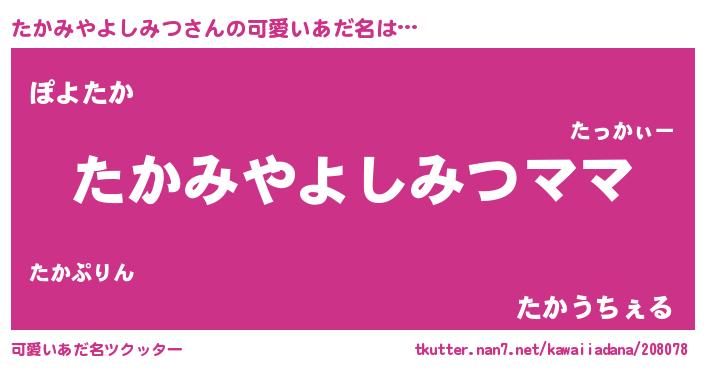 | ヘコむあだ名 | 『たかみやよしみつ(遠い目)』『たか太郎』 |