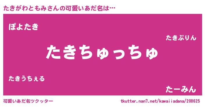 | 女子向けラノベタイトル風あだ名 | 『たきがわともみ恋絵巻』 |