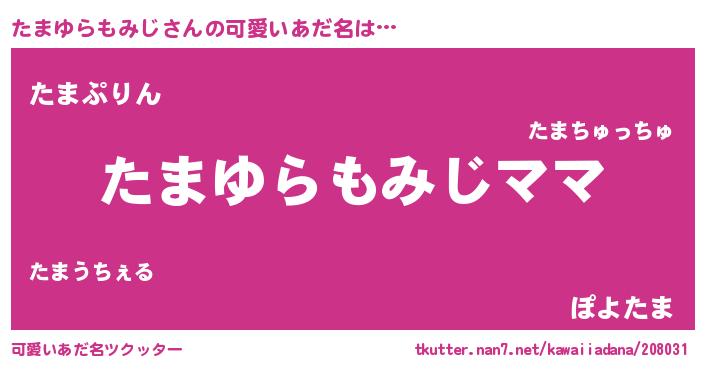 | ヘコむあだ名 | 『たまゆらもみじ(小並感)』『たま太郎』 |