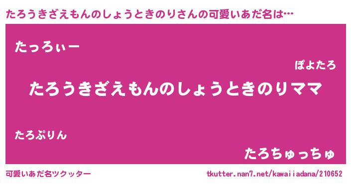 | ヒーロー風カッコイイあだ名 | 『ネオタロウキザエモンノショウトキノリ』 |