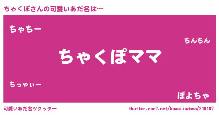 | ヒーロー風カッコイイあだ名 | 『ネオチャクポ』『ウルトラちゃくぽマン』 |