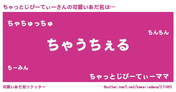 | ヘコむあだ名 | 『ちゃっとじぴーてぃー(小並感)』『ちゃを』 |
